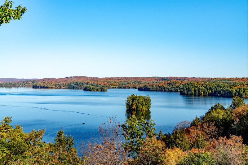 Fall: Cooler temperatures and fewer crowds make it a beautiful time for hiking or simply taking a drive through Muskoka. Huntsville is surrounded by forest, so the fall colours are incredible, especially from spots like Lions Lookout.